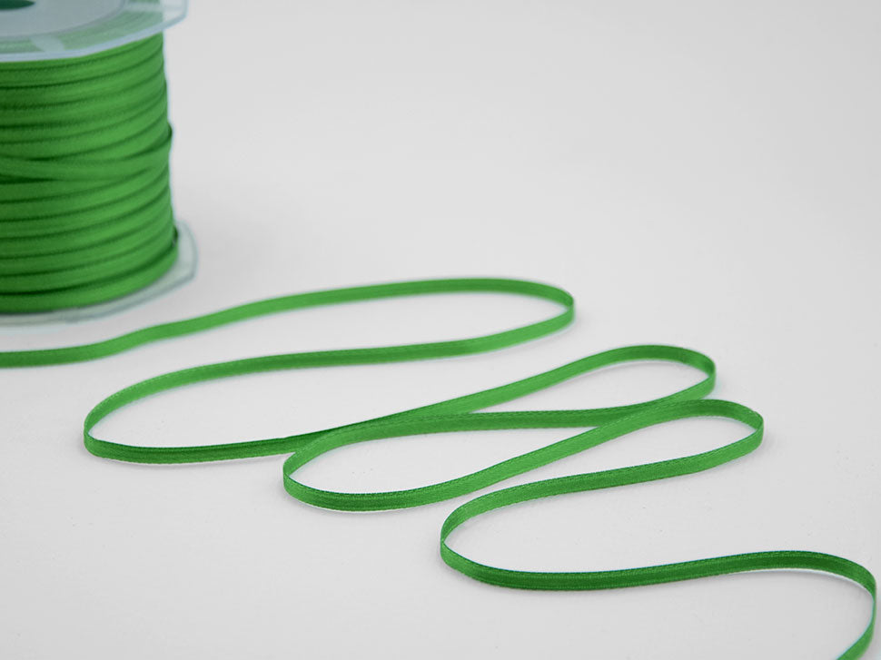 Il nastro elegante e raffinato per definizione è il doppio raso. È versatile e bello da lavorare e, nella sua semplicità, si presta ad ogni utilizzo. Essendo un prodotto di alta qualità si annoda molto facilmente formando un bel fiocco con le code che presentano un taglio netto e definito, che non si sfilaccia. Il suo aspetto è luminoso, consistente e corposo, ma al tatto è decisamente delicato e setoso. I suoi 3mm di altezza e le infinite possibilità di personalizzazione lo rendono un nastro ideale per molteplici utilizzi: dalla confezione di bomboniere di matrimoni e cerimonie alla decorazione dei fiori e della tavola; dalle confezioni regalo, anche natalizie, a tutti gli eventi di pregio. La bobina contiene 100 metri di nastro doppio raso 3mm. Disponibile in un’ampia gamma di tonalità e altezze, viene qui presentato nel colore 32, verde bandiera