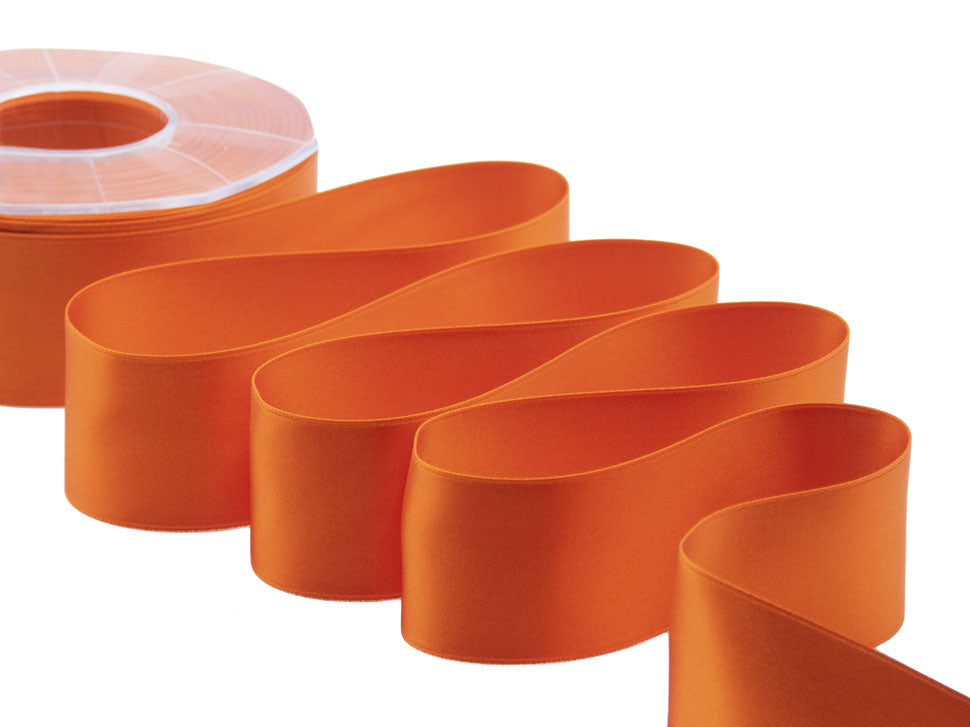 Il nastro elegante e raffinato per definizione è il doppio raso. È versatile e bello da lavorare e, nella sua semplicità, si presta ad ogni utilizzo. Essendo un prodotto di alta qualità si annoda molto facilmente formando un bel fiocco con le code che presentano un taglio netto e definito, che non si sfilaccia. Il suo aspetto è luminoso, consistente e corposo, ma al tatto è decisamente delicato e setoso. I suoi 40mm di altezza e le infinite possibilità di personalizzazione lo rendono un nastro ideale per molteplici utilizzi: dalla confezione di bomboniere di matrimoni e cerimonie alla decorazione dei fiori e della tavola; dalle confezioni regalo, anche natalizie, a tutti gli eventi di pregio. La bobina contiene 25 metri di nastro doppio raso 40mm. Disponibile in un’ampia gamma di tonalità e altezze, viene qui presentato nel colore 40, arancione