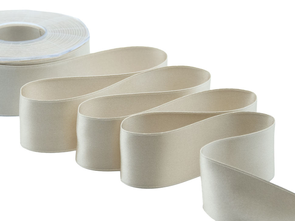 Il nastro elegante e raffinato per definizione è il doppio raso. È versatile e bello da lavorare e, nella sua semplicità, si presta ad ogni utilizzo. Essendo un prodotto di alta qualità si annoda molto facilmente formando un bel fiocco con le code che presentano un taglio netto e definito, che non si sfilaccia. Il suo aspetto è luminoso, consistente e corposo, ma al tatto è decisamente delicato e setoso. I suoi 40mm di altezza e le infinite possibilità di personalizzazione lo rendono un nastro ideale per molteplici utilizzi: dalla confezione di bomboniere di matrimoni e cerimonie alla decorazione dei fiori e della tavola; dalle confezioni regalo, anche natalizie, a tutti gli eventi di pregio. La bobina contiene 25 metri di nastro doppio raso 40mm. Disponibile in un’ampia gamma di tonalità e altezze, viene qui presentato nel colore 2, beige