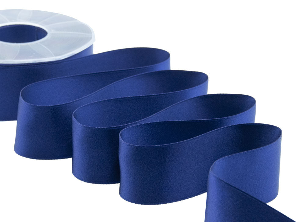 Il nastro elegante e raffinato per definizione è il doppio raso. È versatile e bello da lavorare e, nella sua semplicità, si presta ad ogni utilizzo. Essendo un prodotto di alta qualità si annoda molto facilmente formando un bel fiocco con le code che presentano un taglio netto e definito, che non si sfilaccia. Il suo aspetto è luminoso, consistente e corposo, ma al tatto è decisamente delicato e setoso. I suoi 40mm di altezza e le infinite possibilità di personalizzazione lo rendono un nastro ideale per molteplici utilizzi: dalla confezione di bomboniere di matrimoni e cerimonie alla decorazione dei fiori e della tavola; dalle confezioni regalo, anche natalizie, a tutti gli eventi di pregio. La bobina contiene 25 metri di nastro doppio raso 40mm. Disponibile in un’ampia gamma di tonalità e altezze, viene qui presentato nel colore 426, blu scuro