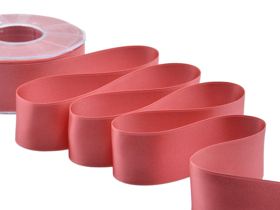 Il nastro elegante e raffinato per definizione è il doppio raso. È versatile e bello da lavorare e, nella sua semplicità, si presta ad ogni utilizzo. Essendo un prodotto di alta qualità si annoda molto facilmente formando un bel fiocco con le code che presentano un taglio netto e definito, che non si sfilaccia. Il suo aspetto è luminoso, consistente e corposo, ma al tatto è decisamente delicato e setoso. I suoi 40mm di altezza e le infinite possibilità di personalizzazione lo rendono un nastro ideale per molteplici utilizzi: dalla confezione di bomboniere di matrimoni e cerimonie alla decorazione dei fiori e della tavola; dalle confezioni regalo, anche natalizie, a tutti gli eventi di pregio. La bobina contiene 25 metri di nastro doppio raso 40mm. Disponibile in un’ampia gamma di tonalità e altezze, viene qui presentato nel colore 481, rosso corallo