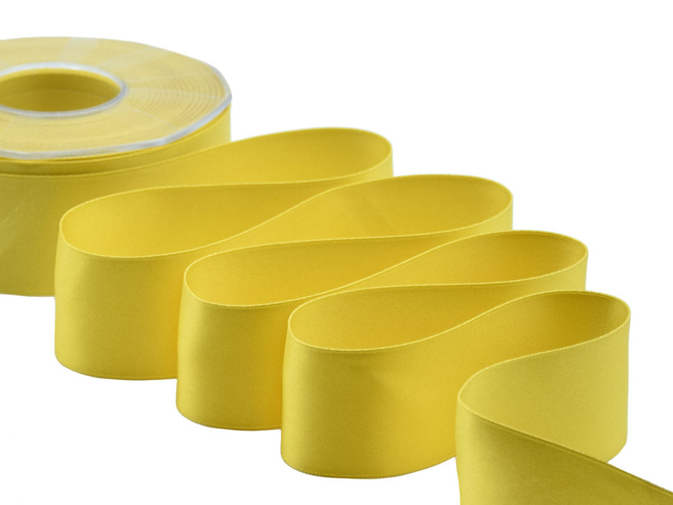 Il nastro elegante e raffinato per definizione è il doppio raso. È versatile e bello da lavorare e, nella sua semplicità, si presta ad ogni utilizzo. Essendo un prodotto di alta qualità si annoda molto facilmente formando un bel fiocco con le code che presentano un taglio netto e definito, che non si sfilaccia. Il suo aspetto è luminoso, consistente e corposo, ma al tatto è decisamente delicato e setoso. I suoi 40mm di altezza e le infinite possibilità di personalizzazione lo rendono un nastro ideale per molteplici utilizzi: dalla confezione di bomboniere di matrimoni e cerimonie alla decorazione dei fiori e della tavola; dalle confezioni regalo, anche natalizie, a tutti gli eventi di pregio. La bobina contiene 25 metri di nastro doppio raso 40mm. Disponibile in un’ampia gamma di tonalità e altezze, viene qui presentato nel colore 430, zolfo