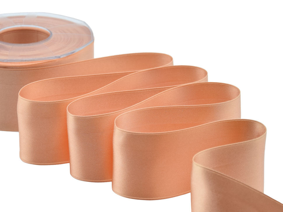Il nastro elegante e raffinato per definizione è il doppio raso. È versatile e bello da lavorare e, nella sua semplicità, si presta ad ogni utilizzo. Essendo un prodotto di alta qualità si annoda molto facilmente formando un bel fiocco con le code che presentano un taglio netto e definito, che non si sfilaccia. Il suo aspetto è luminoso, consistente e corposo, ma al tatto è decisamente delicato e setoso. I suoi 50mm di altezza e le infinite possibilità di personalizzazione lo rendono un nastro ideale per molteplici utilizzi: dalla confezione di bomboniere di matrimoni e cerimonie alla decorazione dei fiori e della tavola; dalle confezioni regalo, anche natalizie, a tutti gli eventi di pregio. La bobina contiene 25 metri di nastro doppio raso 50mm. Disponibile in un’ampia gamma di tonalità e altezze, viene qui presentato nel colore 127, arancio albicocca
