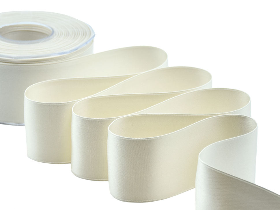 Il nastro elegante e raffinato per definizione è il doppio raso. È versatile e bello da lavorare e, nella sua semplicità, si presta ad ogni utilizzo. Essendo un prodotto di alta qualità si annoda molto facilmente formando un bel fiocco con le code che presentano un taglio netto e definito, che non si sfilaccia. Il suo aspetto è luminoso, consistente e corposo, ma al tatto è decisamente delicato e setoso. Disponibile in un’ampia gamma di tonalità e altezze, viene qui presentato nel colore 1, bianco naturale, un colore classico, romantico ed intramontabile, perfetto per matrimoni e bomboniere ma adatto ad ogni occasione. I suoi 50mm di altezza e le infinite possibilità di personalizzazione lo rendono un nastro ideale per molteplici utilizzi: dalla confezione di bomboniere di matrimoni e cerimonie alla decorazione dei fiori e della tavola; dalle confezioni regalo, anche natalizie, a tutti gli eventi di pregio. La bobina contiene 25 metri di nastro doppio raso 50mm. Disponibile in un’ampia gamma di tonalità e altezze, viene qui presentato nel colore 35, avorio