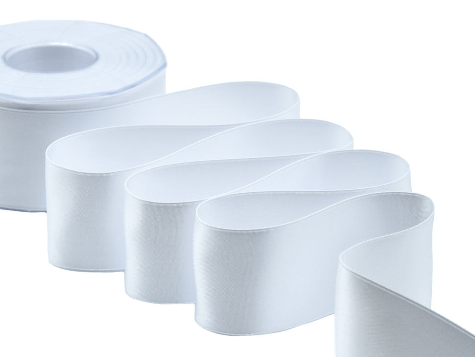 Il nastro elegante e raffinato per definizione è il doppio raso. È versatile e bello da lavorare e, nella sua semplicità, si presta ad ogni utilizzo. Essendo un prodotto di alta qualità si annoda molto facilmente formando un bel fiocco con le code che presentano un taglio netto e definito, che non si sfilaccia. Il suo aspetto è luminoso, consistente e corposo, ma al tatto è decisamente delicato e setoso. I suoi 50mm di altezza e le infinite possibilità di personalizzazione lo rendono un nastro ideale per molteplici utilizzi: dalla confezione di bomboniere di matrimoni e cerimonie alla decorazione dei fiori e della tavola; dalle confezioni regalo, anche natalizie, a tutti gli eventi di pregio. La bobina contiene 25 metri di nastro doppio raso 50mm. Disponibile in un’ampia gamma di tonalità e altezze, viene qui presentato nel colore 13, bianco ottico