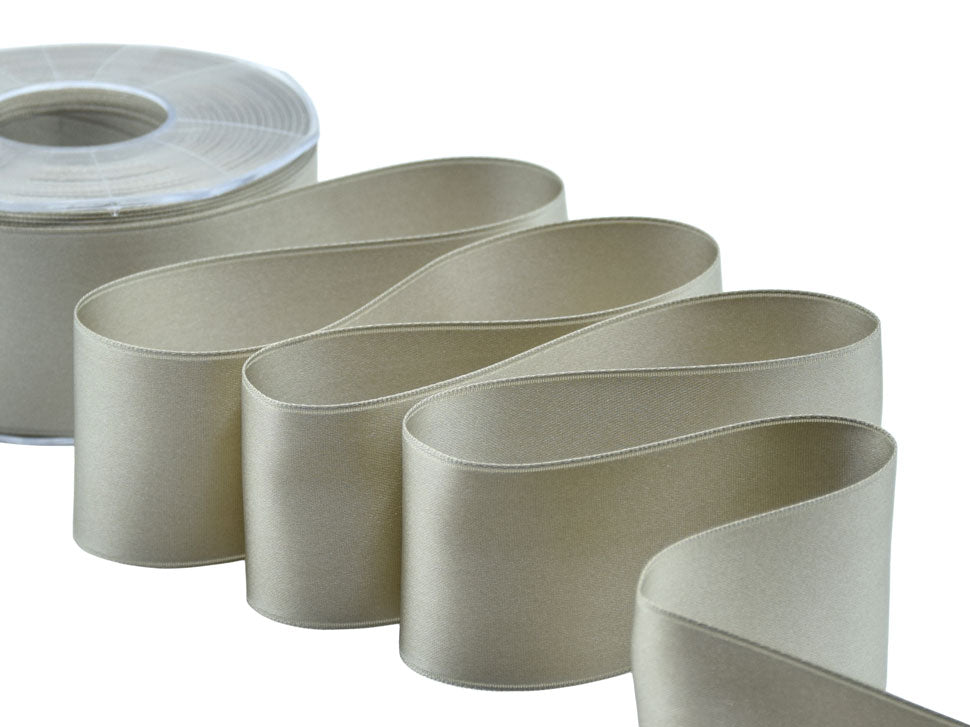 Il nastro elegante e raffinato per definizione è il doppio raso. È versatile e bello da lavorare e, nella sua semplicità, si presta ad ogni utilizzo. Essendo un prodotto di alta qualità si annoda molto facilmente formando un bel fiocco con le code che presentano un taglio netto e definito, che non si sfilaccia. Il suo aspetto è luminoso, consistente e corposo, ma al tatto è decisamente delicato e setoso. I suoi 50mm di altezza e le infinite possibilità di personalizzazione lo rendono un nastro ideale per molteplici utilizzi: dalla confezione di bomboniere di matrimoni e cerimonie alla decorazione dei fiori e della tavola; dalle confezioni regalo, anche natalizie, a tutti gli eventi di pregio. La bobina contiene 25 metri di nastro doppio raso 50mm. Disponibile in un’ampia gamma di tonalità e altezze, viene qui presentato nel colore 54, tortora