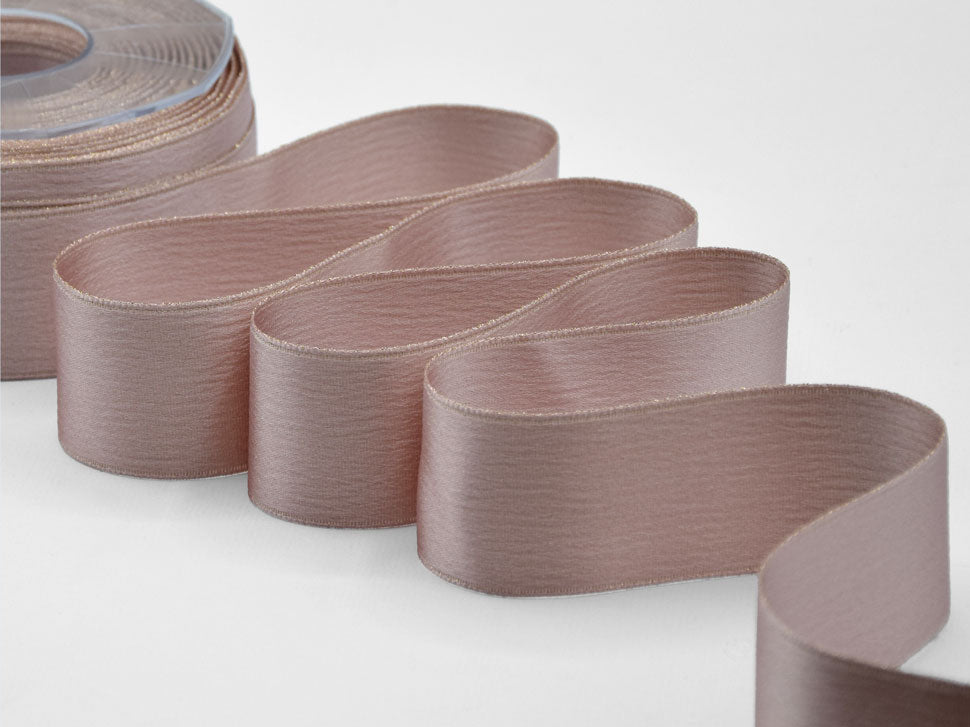 Il nastro elegante e raffinato per definizione è il doppio raso. È versatile e bello da lavorare e, nella sua semplicità, si presta ad ogni utilizzo. Essendo un prodotto di alta qualità si annoda molto facilmente formando un bel fiocco con le code che presentano un taglio netto e definito, che non si sfilaccia. Il suo aspetto è luminoso, consistente e corposo, ma al tatto è decisamente delicato e setoso. I suoi 25mm di altezza e le infinite possibilità di personalizzazione lo rendono un nastro ideale per molteplici utilizzi: dalla confezione di bomboniere di matrimoni e cerimonie alla decorazione dei fiori e della tavola; dalle confezioni regalo, anche natalizie, a tutti gli eventi di pregio. La bobina contiene 25 metri di nastro doppio raso 40mm. Disponibile in un’ampia gamma di tonalità e altezze, viene qui presentato nel colore 552
