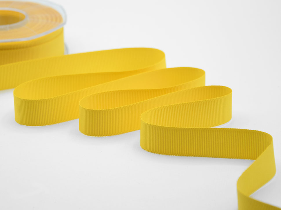 Gros Grain 20 MM Giallo Sole. Il nastro Gros Grain, conosciuto anche come nastro Canetè, è un prodotto classico, ever-green, elegante che può avere molti utilizzi in particolar modo nelle cerimonie quali matrimoni, eventi, serate speciali, one-night, grandi occasioni. La sua classicità viene ravvivata da un’ampia gamma di colori. Inoltre può essere anche utilizzato per abbellire capi di abbigliamento e rendere alcuni outfit unici. È un nastro presente anche in molti costumi tradizionali di molte regioni italiane. È il nastro della nonna, della zia, della festa alla moda ma anche della festa del paese.. Codice colore# 1006 - CONFEZIONATO IN BOBINA DA METRI 20