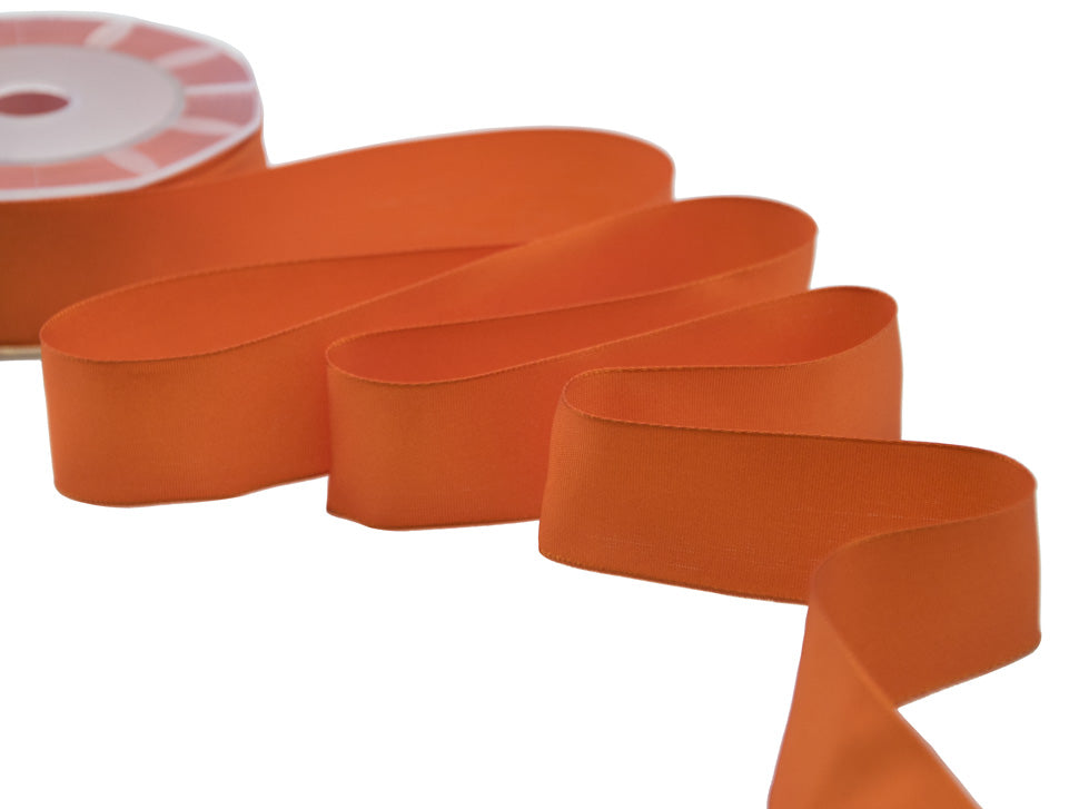 Carlotta Raso Bordi Rame 27 MM Arancione. Il taffetà con i bordi animati, Carlotta, è setoso e lucido. Il suo tessuto è formato da fili sottilissimi che donano un aspetto particolarmente ricercato e il bordo in rame permette di fare confezioni perfette, ben modellate, particolarmente adatte per la pasticceria, la dolciaria, il cake-design e tutta la vetrinistica. Codice colore# 40 - CONFEZIONATO IN BOBINA DA METRI 20