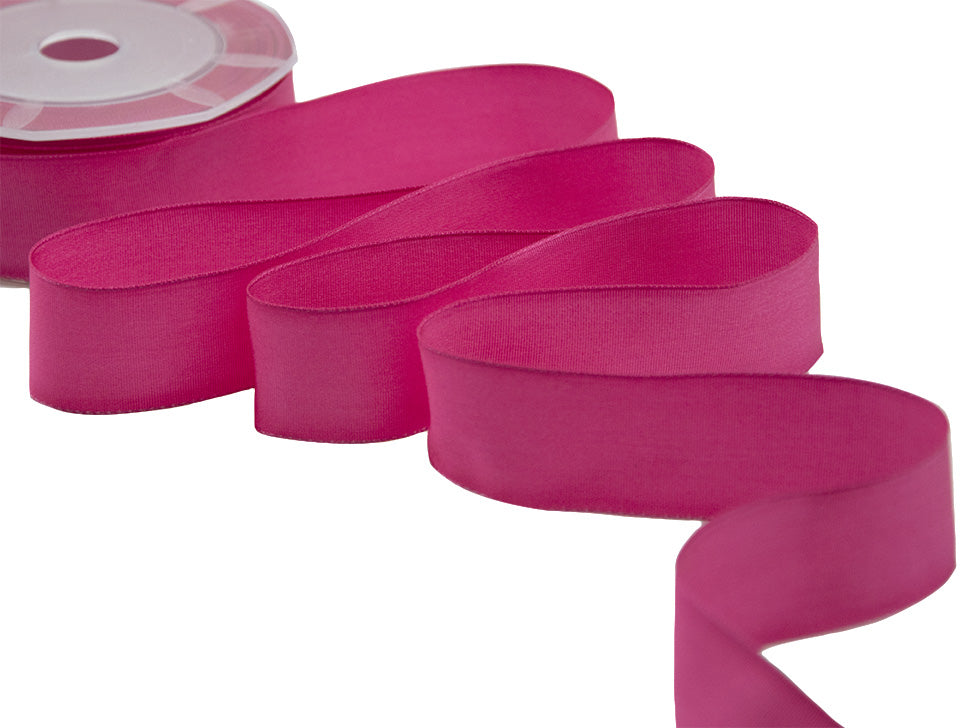 Carlotta Raso Bordi Rame 27 MM Fuxia Peonia. Il taffetà con i bordi animati, Carlotta, è setoso e lucido. Il suo tessuto è formato da fili sottilissimi che donano un aspetto particolarmente ricercato e il bordo in rame permette di fare confezioni perfette, ben modellate, particolarmente adatte per la pasticceria, la dolciaria, il cake-design e tutta la vetrinistica. Codice colore# 26 - CONFEZIONATO IN BOBINA DA METRI 20