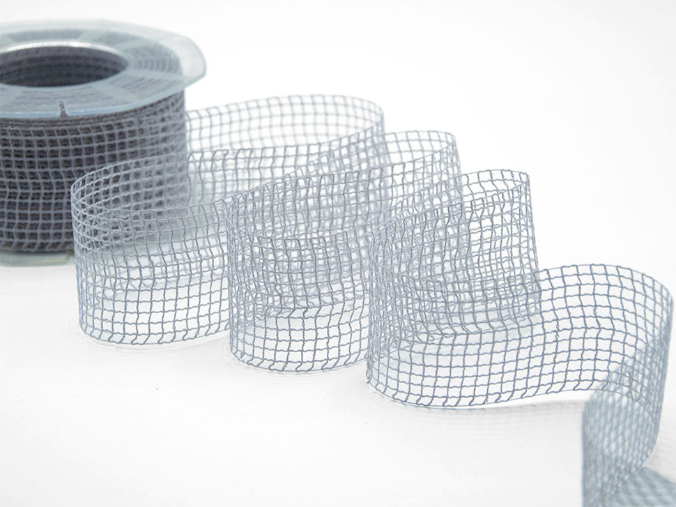 Retina 50 MM Grigio Perla. Rete per confezioni e decorazioni tessuta con un filato cotoniero, opaco, dall'aspetto molto naturale, anche detta rete Africa. Codice colore# 73 - CONFEZIONATO IN BOBINA DA METRI 15