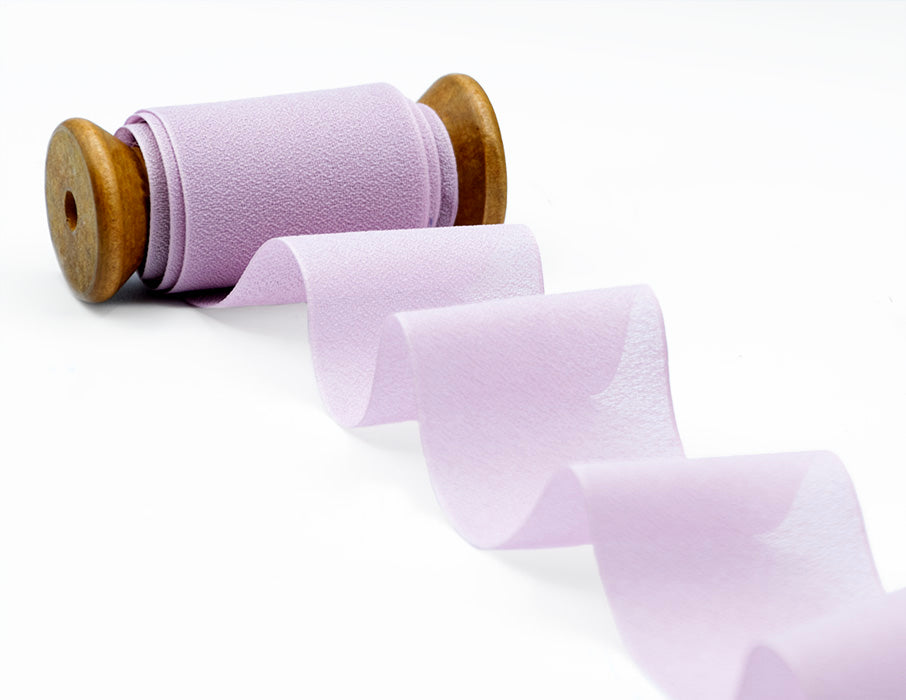Crêpe Effetto Seta 48 mm Malva Chiaro. Il nastro in chiffon ha un aspetto molto delicato e leggero, morbido al tatto come un nastro in seta. Di alta qualità perché prodotto in filato 100% poliestere, è caratterizzato da una texture opaca e semi trasparente. Abbinalo ai tuoi bouquet floreali, ai tuoi inviti in carta, per creare un originale segnaposto o per un packaging ultra raffinato. Codice colore # 78. Confezionato in bobina da 25 metri.