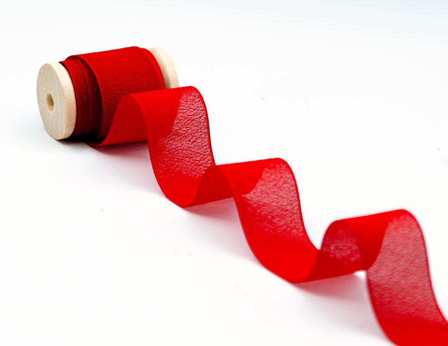 Crêpe Effetto Seta Rosso 25mm. Il nastro in chiffon ha un aspetto molto delicato e leggero, morbido al tatto come un nastro in seta. Di alta qualità perché prodotto in filato 100% poliestere, è caratterizzato da una texture opaca e semi trasparente. Abbinalo ai tuoi bouquet floreali, ai tuoi inviti in carta, per creare un originale segnaposto o per un packaging ultra raffinato. Codice colore# 31 - CONFEZIONATO IN BOBINA DA METRI 25