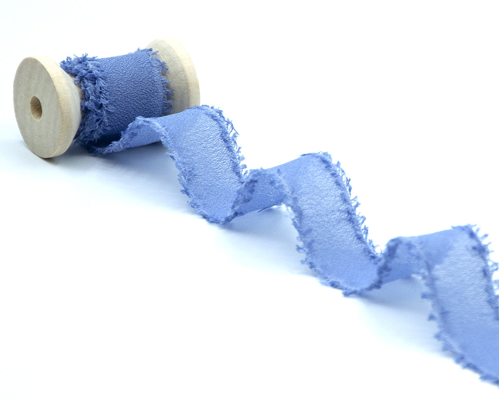 Crêpe Effetto Seta Sfrangiato Avio 25mm. Il nastro in chiffon ha un aspetto molto delicato e leggero, morbido al tatto come un nastro in seta. Di alta qualità perché prodotto in filato 100% poliestere, è caratterizzato da una texture opaca e semi trasparente e da bordi sfilacciati. Abbinalo ai tuoi bouquet floreali, ai tuoi inviti in carta, per creare un originale segnaposto o per un packaging ultra raffinato. Codice colore #43 - CONFEZIONATO IN BOBINA DA METRI 25