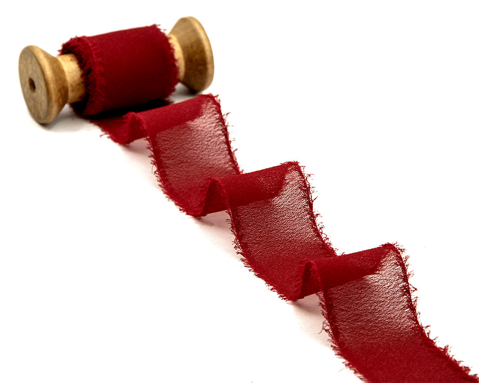 Crêpe Effetto Seta Sfrangiato Amaranto 40mm. Il nastro in chiffon ha un aspetto molto delicato e leggero, morbido al tatto come un nastro in seta. Di alta qualità perché prodotto in filato 100% poliestere, è caratterizzato da una texture opaca e semi trasparente e da bordi sfilacciati. Abbinalo ai tuoi bouquet floreali, ai tuoi inviti in carta, per creare un originale segnaposto o per un packaging ultra raffinato. Codice colore #46 - CONFEZIONATO IN BOBINA DA METRI 25
