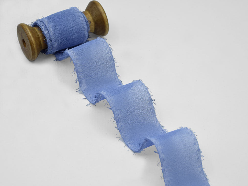 Crêpe Effetto Seta Sfrangiato Avio 40mm. Il nastro in chiffon ha un aspetto molto delicato e leggero, morbido al tatto come un nastro in seta. Di alta qualità perché prodotto in filato 100% poliestere, è caratterizzato da una texture opaca e semi trasparente e da bordi sfilacciati. Abbinalo ai tuoi bouquet floreali, ai tuoi inviti in carta, per creare un originale segnaposto o per un packaging ultra raffinato. Codice colore #43 - CONFEZIONATO IN BOBINA DA METRI 25