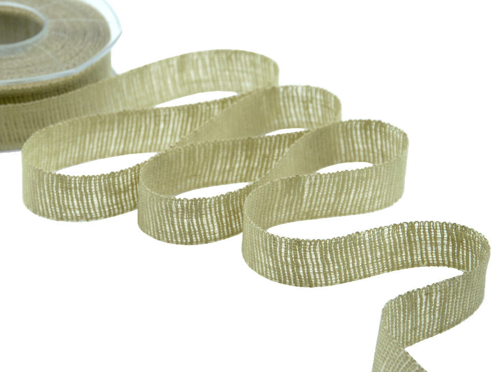 Lino 30 MM Salvia. E’ un nastro molto pregiato, in puro lino, sinonimo di natura, ricorda le lenzuola del corredo della nonna. Sembra ruvido, ma non lo è, è molto facile da lavorare. Ha una gamma colori calda, classica e semplice. Dall’apparenza rustica, in realtà è molto elegante e abbina l’antico con il moderno, la tradizione naturale con l’eleganza più raffinata. E’ il complemento ideale per i prodotti artigianali e può essere utilizzato benissimo anche nelle cerimonie più eleganti per le quali è prevista anche una versione lamè. Questo nastro trasmette calore e semplicità. I Nastri in puro lino naturale sono molto caratteristici grazie ai loro colori naturali ed al loro aspetto rustico ed elegante, perfetti per dare un effetto chic e naturale ad ogni tipo di decorazione.