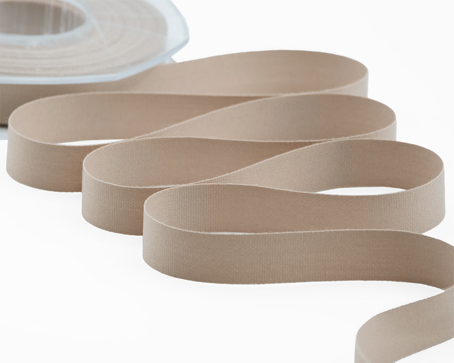 Nastro di Cotone 15 mm Beige. Questo nastro è prodotto con filato 100% cotone. Dall'aspetto estremamente naturale, questo nastro può essere utilizzato per la decorazione di packaging ecologici o plastic-free. Codice colore # 2. Confezionato in bobina da 20 metri.