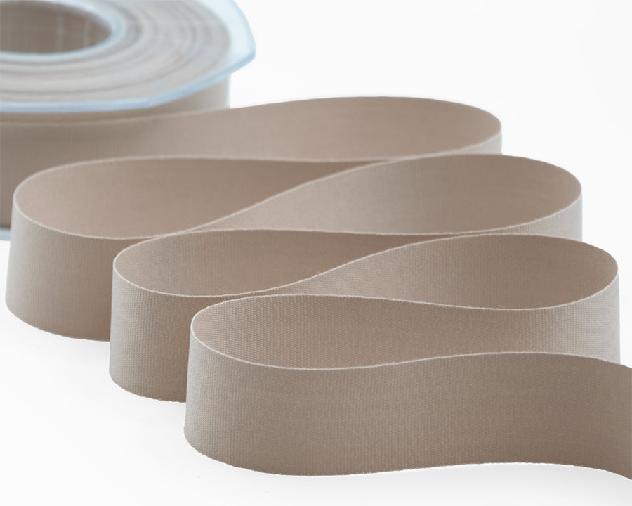 Nastro di Cotone 25 mm Beige. Questo nastro è prodotto con filato 100% cotone. Dall'aspetto estremamente naturale, questo nastro può essere utilizzato per la decorazione di packaging ecologici o plastic-free. Codice colore # 2. Confezionato in bobina da 20 metri.