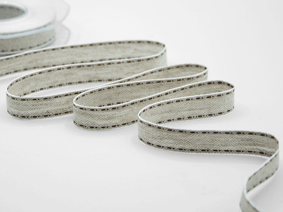Nastro Lino Canapa Impuntura 17 MM Marrone. E’ un nastro molto pregiato, in lino, canapa e viscosa, sinonimo di natura, ricorda le tele di una volta. Sembra ruvido, ma non lo è, è molto facile da lavorare. Ha un colore nocciola, classico e semplice. Dall’apparenza rustica, in realtà è molto elegante e abbina l’antico con il moderno, la tradizione naturale con l’eleganza più raffinata. E’ il complemento ideale per i prodotti artigianali e può essere utilizzato benissimo anche nelle cerimonie più eleganti. Questo nastro trasmette calore e semplicità. I Nastri in lino e canapa esistono anche nella versione con impuntura, sono molto caratteristici grazie ai loro colori naturali ed al loro aspetto rustico ed elegante, perfetti per dare un effetto chic e naturale ad ogni tipo di decorazione. Basta giocare con la fantasia e usare questi nastri di stoffa per la realizzazione di svariati progetti fai da te e artigianali; sono perfetti per il tema natalizio, rustico, country, vintage e shabby e per la realizzazione di bomboniere: battesimo, comunione, cresima, laurea, matrimonio, diciottesimo, fidanzamento. Prodotti con materiale di alta qualità. Codice colore# 44 - CONFEZIONATO IN BOBINA DA METRI 10