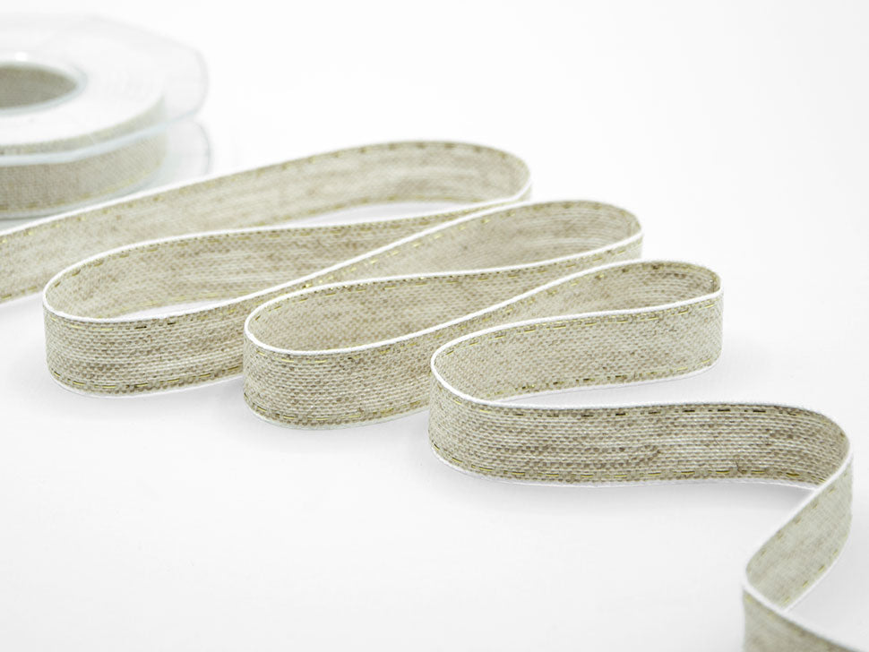 Nastro Lino Canapa Impuntura 17 MM Oro. E’ un nastro molto pregiato, in lino, canapa e viscosa, sinonimo di natura, ricorda le tele di una volta. Sembra ruvido, ma non lo è, è molto facile da lavorare. Ha un colore nocciola, classico e semplice. Dall’apparenza rustica, in realtà è molto elegante e abbina l’antico con il moderno, la tradizione naturale con l’eleganza più raffinata. E’ il complemento ideale per i prodotti artigianali e può essere utilizzato benissimo anche nelle cerimonie più eleganti. Questo nastro trasmette calore e semplicità. I Nastri in lino e canapa esistono anche nella versione con impuntura, sono molto caratteristici grazie ai loro colori naturali ed al loro aspetto rustico ed elegante, perfetti per dare un effetto chic e naturale ad ogni tipo di decorazione. Basta giocare con la fantasia e usare questi nastri di stoffa per la realizzazione di svariati progetti fai da te e artigianali; sono perfetti per il tema natalizio, rustico, country, vintage e shabby e per la realizzazione di bomboniere: battesimo, comunione, cresima, laurea, matrimonio, diciottesimo, fidanzamento. Prodotti con materiale di alta qualità. Codice colore# 102 - CONFEZIONATO IN BOBINA DA METRI 10