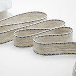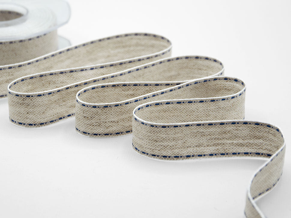 Nastro Lino Canapa Impuntura 26 MM Blu Scuro. E’ un nastro molto pregiato, in lino, canapa e viscosa, sinonimo di natura, ricorda le tele di una volta. Sembra ruvido, ma non lo è, è molto facile da lavorare. Ha un colore nocciola, classico e semplice. Dall’apparenza rustica, in realtà è molto elegante e abbina l’antico con il moderno, la tradizione naturale con l’eleganza più raffinata. E’ il complemento ideale per i prodotti artigianali e può essere utilizzato benissimo anche nelle cerimonie più eleganti. Questo nastro trasmette calore e semplicità. I Nastri in lino e canapa esistono anche nella versione con impuntura, sono molto caratteristici grazie ai loro colori naturali ed al loro aspetto rustico ed elegante, perfetti per dare un effetto chic e naturale ad ogni tipo di decorazione. Basta giocare con la fantasia e usare questi nastri di stoffa per la realizzazione di svariati progetti fai da te e artigianali; sono perfetti per il tema natalizio, rustico, country, vintage e shabby e per la realizzazione di bomboniere: battesimo, comunione, cresima, laurea, matrimonio, diciottesimo, fidanzamento. Prodotti con materiale di alta qualità. Codice colore# 426 - CONFEZIONATO IN BOBINA DA METRI 10