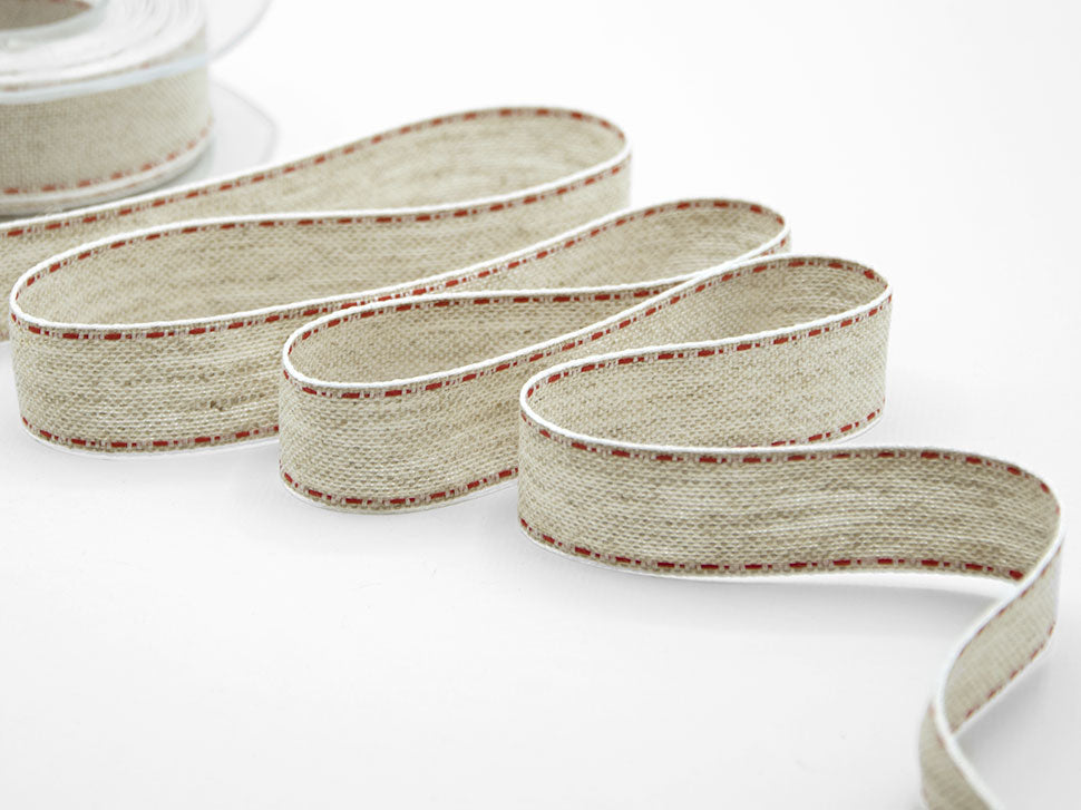 Nastro Lino Canapa Impuntura 26 MM Rosso. E’ un nastro molto pregiato, in lino, canapa e viscosa, sinonimo di natura, ricorda le tele di una volta. Sembra ruvido, ma non lo è, è molto facile da lavorare. Ha un colore nocciola, classico e semplice. Dall’apparenza rustica, in realtà è molto elegante e abbina l’antico con il moderno, la tradizione naturale con l’eleganza più raffinata. E’ il complemento ideale per i prodotti artigianali e può essere utilizzato benissimo anche nelle cerimonie più eleganti. Questo nastro trasmette calore e semplicità. I Nastri in lino e canapa esistono anche nella versione con impuntura, sono molto caratteristici grazie ai loro colori naturali ed al loro aspetto rustico ed elegante, perfetti per dare un effetto chic e naturale ad ogni tipo di decorazione. Basta giocare con la fantasia e usare questi nastri di stoffa per la realizzazione di svariati progetti fai da te e artigianali; sono perfetti per il tema natalizio, rustico, country, vintage e shabby e per la realizzazione di bomboniere: battesimo, comunione, cresima, laurea, matrimonio, diciottesimo, fidanzamento. Prodotti con materiale di alta qualità. Codice colore# 31 - CONFEZIONATO IN BOBINA DA METRI 10
