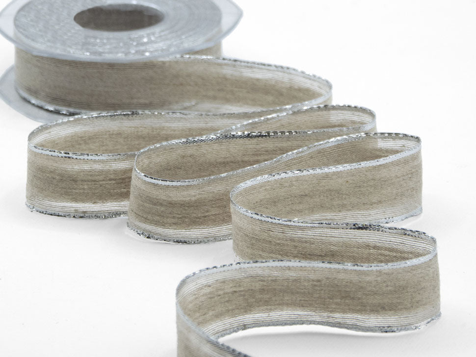 Nastro Lino Degradè 30 MM Bordi Rame Colorati Argento. E’ un nastro molto pregiato, in lino, sinonimo di natura, ricorda le tele di una volta. Sembra ruvido, ma non lo è, è molto facile da lavorare. Ha un colore nocciola, classico e semplice. Dall’apparenza rustica, in realtà è molto elegante e abbina l’antico con il moderno, la tradizione naturale con l’eleganza più raffinata. E’ il complemento ideale per i prodotti artigianali e può essere utilizzato benissimo anche nelle cerimonie più eleganti. Questo nastro trasmette calore e semplicità. I nastri in lino degradè esistono anche nella versione con bordi colorati e stampati, sono molto caratteristici grazie ai loro colori naturali ed al loro aspetto rustico ed elegante, perfetti per dare un effetto chic e naturale ad ogni tipo di decorazione. Basta giocare con la fantasia e usare questi nastri di stoffa per la realizzazione di svariati progetti fai da te e artigianali; sono perfetti per il tema natalizio, rustico, country, vintage e shabby e per la realizzazione di bomboniere. Sono prodotti con materiale di alta qualità. Codice colore #101 - CONFEZIONATO IN BOBINA DA METRI 15
