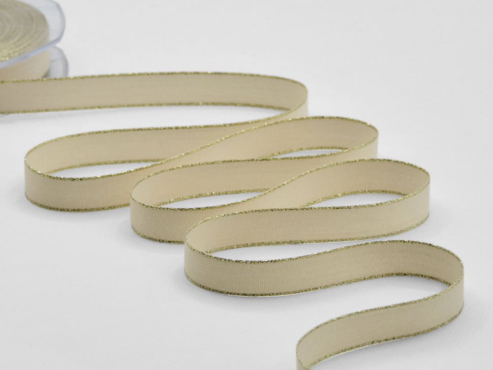 Policotone Bordi Oro 15 MM Avorio. I nastri in policotone e dall’aspetto naturale sono in linea con le tendenze green per realizzare confezioni e decorazioni dall’effetto rustico o grezzo. Opaco, dall’aspetto naturale, risulta ancora più elegante grazie alla presenza dei bordi oro. Si lavora facilmente e viene usato sempre più spesso per le creazioni di confezioni di regalo di lusso, per le maniglie di shopper, per le creazioni di bomboniere, per le decorazioni natalizie, per gli addobbi floreali e per le confezioni alimentari. Apprezzato anche da importanti marchi di moda è stato scelto per la personalizzazione del loro nastro con logo. Come tutti i nostri nastri si annoda molto facilmente e al taglio non si sfilaccia. Il nastro in tessuto tipo cotone viene prodotta in un’ampia gamma di colori ed altezze.. Codice colore# 35 - CONFEZIONATO IN BOBINA DA METRI 20