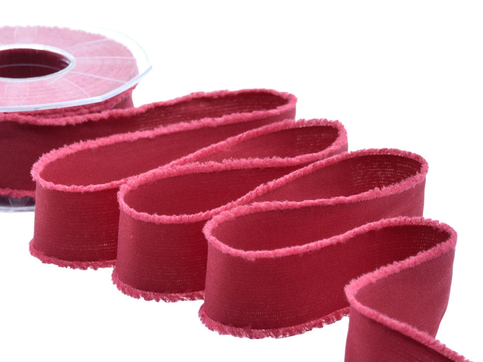 Sfrangiato 38 MM Amaranto. Il nastro sfrangiato F182 ti darà la possibilità di personalizzare ancora di più le tue inimitabili creazioni in stile shabby chic. Il nastro sfrangiato è un nastro opaco coprente, molto piacevole al tatto, con bordo sfilacciato morbido. Di alta qualità perché prodotto in filato poliestere cotoniero, sembra fatto a mano e donerà un look unico alle tue creazioni. Questi nastri sfrangiati mantengono facilmente la loro forma quando annodati, sono facili da usare adatti per le confezioni regalo, fiocchi, ghirlande, mazzi di fiori, bouquet, decorazioni, bomboniere, accessori per l’abbigliamento, oggettistica per la casa. La gamma dei colori tinta unita dell’articolo sfrangiato è molto ricca, e sono disponibili anche delle versioni stampate (fantasie floreali, pois). Codice colore# 46 - CONFEZIONATO IN BOBINA DA METRI 15