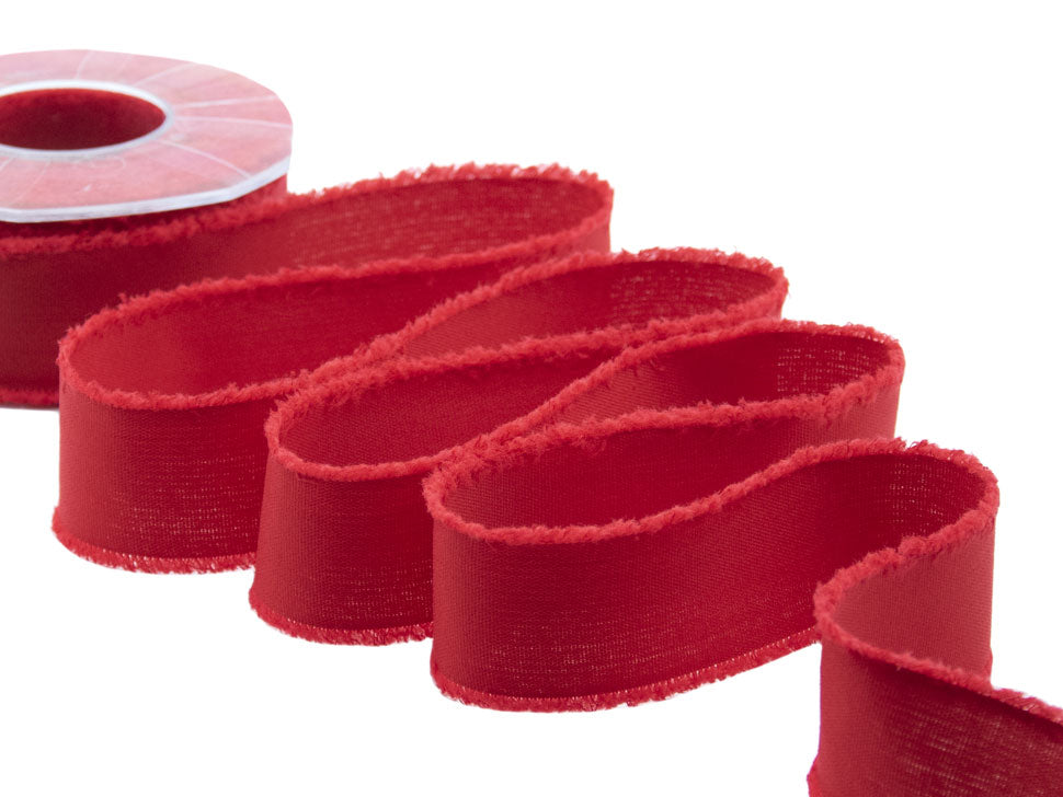 Sfrangiato 38 MM Rosso. Il nastro sfrangiato F182 ti darà la possibilità di personalizzare ancora di più le tue inimitabili creazioni in stile shabby chic. Il nastro sfrangiato è un nastro opaco coprente, molto piacevole al tatto, con bordo sfilacciato morbido. Di alta qualità perché prodotto in filato poliestere cotoniero, sembra fatto a mano e donerà un look unico alle tue creazioni. Questi nastri sfrangiati mantengono facilmente la loro forma quando annodati, sono facili da usare adatti per le confezioni regalo, fiocchi, ghirlande, mazzi di fiori, bouquet, decorazioni, bomboniere, accessori per l’abbigliamento, oggettistica per la casa. La gamma dei colori tinta unita dell’articolo sfrangiato è molto ricca, e sono disponibili anche delle versioni stampate (fantasie floreali, pois). Codice colore# 31 - CONFEZIONATO IN BOBINA DA METRI 15