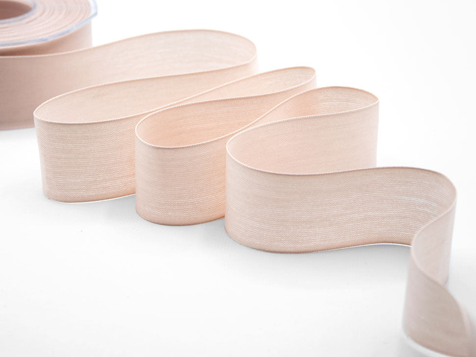 Velo Cotone Resinato 40 MM Rosa Cipria. Tessuto opaco e trasparente come un cotone leggero, con i bordi animati da un filo metallico per dare più sostegno ai vostri fiocchi. Codice colore# 52 - CONFEZIONATO IN BOBINA DA METRI 25