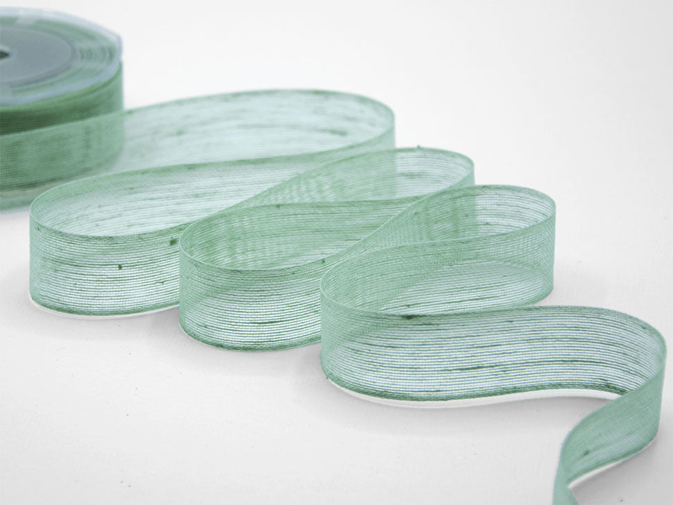 Velo Lino 24 MM Verde Polvere. E’ un nastro molto pregiato, in lino, sinonimo di natura, ricorda le coltivazioni di lavanda. È molto facile da lavorare. Ha una gamma colori calda, classica e semplice ed è leggermente trasparente. Dall’apparenza rustica, in realtà è molto elegante e abbina l’antico con il moderno, la tradizione naturale con l’eleganza più raffinata. E’ il complemento ideale per i prodotti artigianali e può essere utilizzato benissimo anche nelle cerimonie più eleganti per le quali è prevista anche una versione lamè. Questo nastro trasmette calore e semplicità. I Nastri in lino naturale sono molto caratteristici grazie ai loro colori naturali ed al loro aspetto rustico ed elegante, perfetti per dare un effetto chic e naturale ad ogni tipo di decorazione.