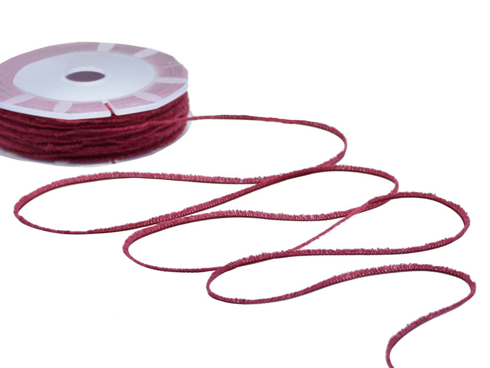Sfrangiato 2 MM Amaranto. Il cordoncino sfrangiato F182 ti darà la possibilità di personalizzare ancora di più le tue inimitabili creazioni in stile shabby chic. Lo sfrangiato è un cordino opaco con bordo sfilacciato morbido. Di alta qualità perché prodotto in filato poliestere cotoniero, sembra fatto a mano e donerà un look unico alle tue creazioni. Questi nastri sfrangiati mantengono facilmente la loro forma quando annodati, sono facili da usare adatti per le confezioni regalo, fiocchi, ghirlande, mazzi di fiori, bouquet, decorazioni, bomboniere, accessori per l’abbigliamento, oggettistica per la casa. La gamma dei colori tinta unita dell’articolo sfrangiato è molto ricca.. Codice colore# 46 - CONFEZIONATO IN BOBINA DA METRI 50
