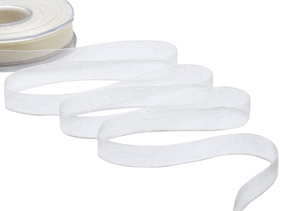 Organza 15mm Avorio. Nastro in velo di organza, trasparente, perfetto per le nozze e la decorazione del matrimonio e nei pacchetti regalo. È tessuto con un filato di organza lucido. Codice colore #35 - CONFEZIONATO IN BOBINA DA METRI 50