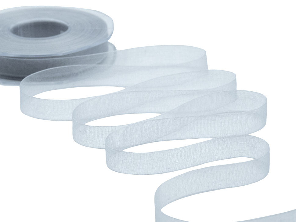 Organza 15mm Grigio Perla. Nastro in velo di organza, trasparente, perfetto per le nozze e la decorazione del matrimonio e nei pacchetti regalo. È tessuto con un filato di organza lucido. Codice colore #73 - CONFEZIONATO IN BOBINA DA METRI 50