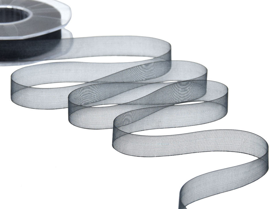 Organza 15mm Nero. Nastro in velo di organza, trasparente, perfetto per le nozze e la decorazione del matrimonio e nei pacchetti regalo. È tessuto con un filato di organza lucido. Codice colore #33 - CONFEZIONATO IN BOBINA DA METRI 50