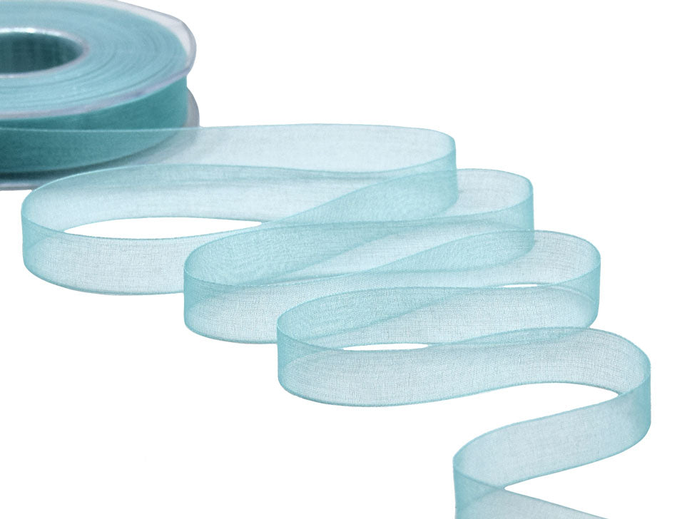 Organza 15mm Verde Acqua Marina. Nastro in velo di organza, trasparente, perfetto per le nozze e la decorazione del matrimonio e nei pacchetti regalo. È tessuto con un filato di organza lucido. Codice colore #64 - CONFEZIONATO IN BOBINA DA METRI 50