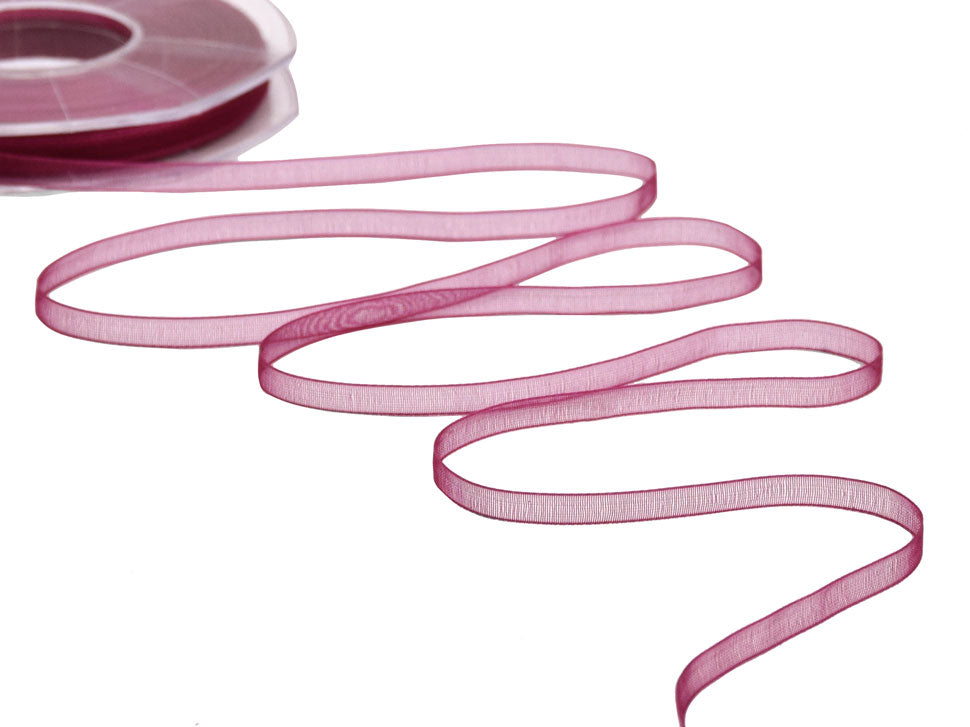 Organza 7mm Amaranto. Nastro in velo di organza, trasparente, perfetto per le nozze e la decorazione del matrimonio e nei pacchetti regalo. È tessuto con un filato di organza lucido. Codice colore #46 - CONFEZIONATO IN BOBINA DA METRI 50
