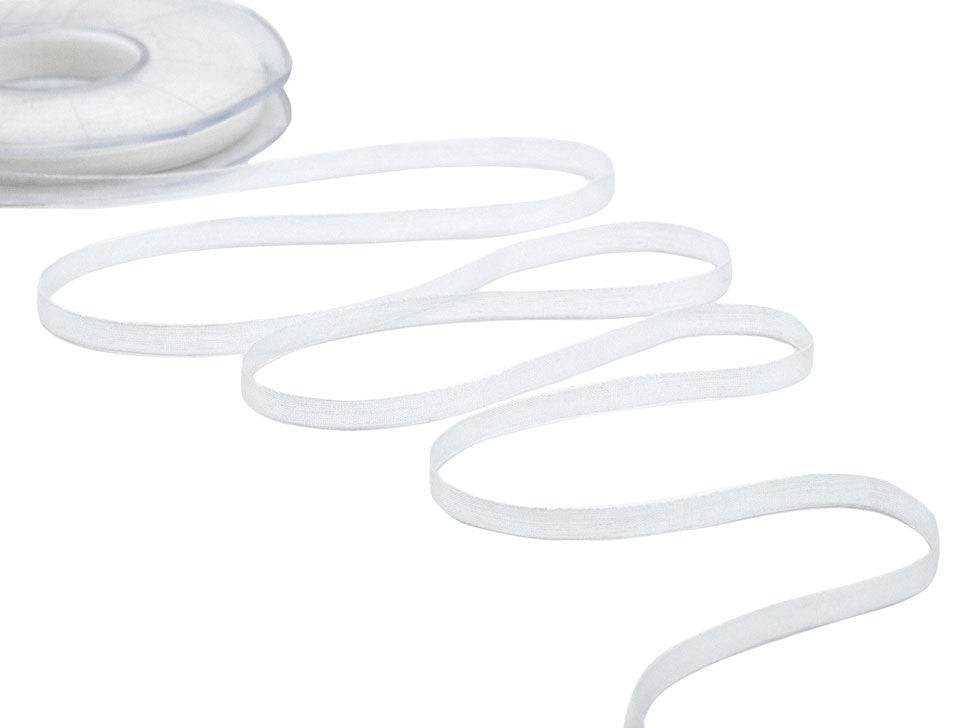 Organza 7mm Bianco Ottico. Nastro in velo di organza, trasparente, perfetto per le nozze e la decorazione del matrimonio e nei pacchetti regalo. È tessuto con un filato di organza lucido. Codice colore #13 - CONFEZIONATO IN BOBINA DA METRI 50