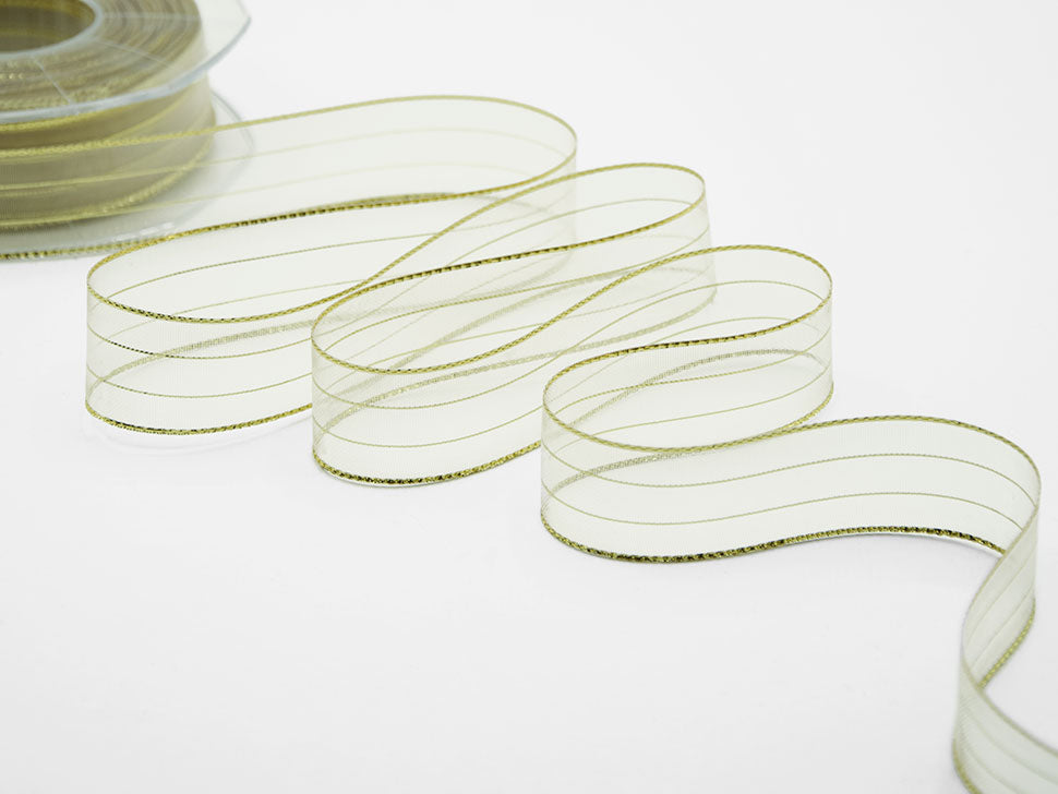Velo Elegante 25 MM Avorio. Meravigliosa organza con fili d'oro, elegante e raffinata. Codice colore# 35 - CONFEZIONATO IN BOBINA DA METRI 25