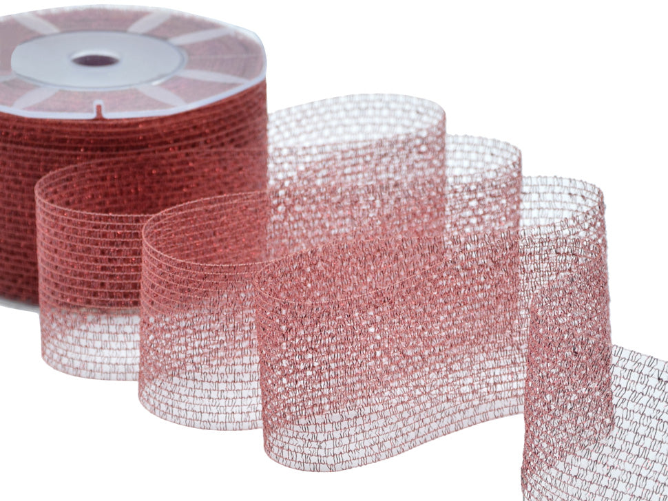 Antares Lurex 65 MM Rosso. Rete sottile, con tramatura fitta ad effetto vedo non vedo, adatta per fiocchi e confezioni natalizie, si abbina con tutte le carte per pacchi regalo. L’articolo R300 è un nastro di rete di colore metallico.