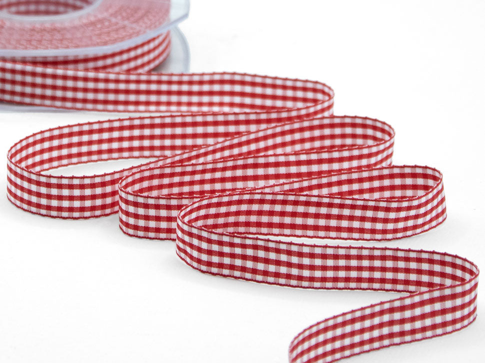 Bamby 15 MM Rosso. Il Bamby è un nastro a quadretti, detto anche vichy, adatto agli utilizzi per le decorazioni dei bambini, come i fiocchi di nascita bimbo e bimba, oppure, negli altri colori, per confezioni country e rustiche. In questa versione è presentato con l'elastico su un bordo a formare una rouge molto comoda da applicare sui bordi. L’articolo T20/15 è un nastro con il motivo classico a quadri con bordi rifiniti più spessi Il nastro scozzese Vichy è un nastro semplice ma alla moda, facile da abbinare, può essere utilizzato con vari oggetti per creare un sapore retrò ed elegante. Il nastro T20 è realizzato con filato poliestere tinto in filo di alta qualità e ha la caratteristica di essere morbido al tatto, di non sbiadire al lavaggio e di avere un taglio netto e definito. Questo quadrettino è molto indicato per le realizzazioni dedicate ai più piccoli: dall’abbigliamento alla creazioni di bomboniere, usato invece nella variante di colore rosso il nastro Vichy è ideale per le decorazioni floreali, per la decorazione della casa, per la confezione dei pacchetti nei periodo di Natale, San Valentino e la festa della mamma. . Codice colore# 31 - CONFEZIONATO IN BOBINA DA METRI 25