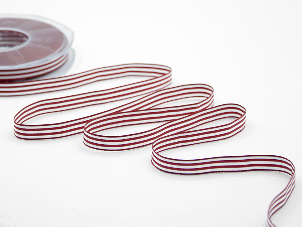 Bamby Rigato 10 MM Amaranto. Il Bamby rigato è un nastro a righine, adatto agli utilizzi per le decorazioni dei bambini, come i fiocchi di nascita bimbo e bimba, oppure, negli altri colori, per confezioni country e allegre, tipo brandina. Codice colore# 46 - CONFEZIONATO IN BOBINA DA METRI 25