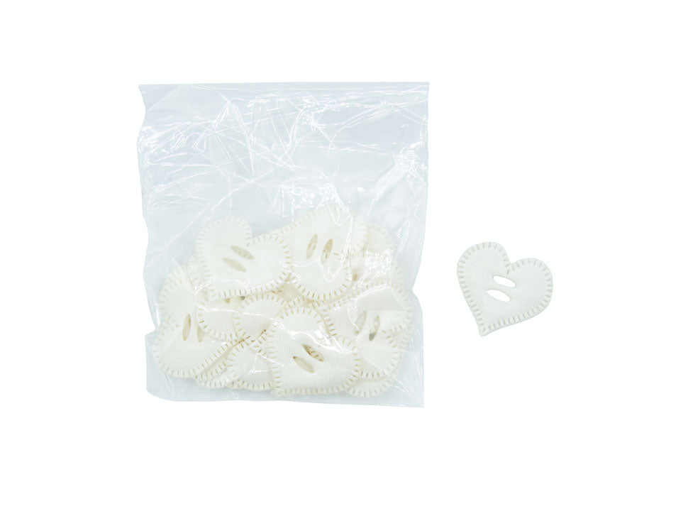 Cuoricini 25 Pezzi-Avorio. Decorazioni in tessuto chiudi-pacco. Codice colore #35 - CONFEZIONATO IN BUSTINA DA PEZZI 25