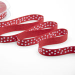 D.Raso 16 MM Stampa Pois Bianchi Rosso. Il nastro elegante e raffinato per definizione è il doppio raso, qui è presentato in una variante stampata. È versatile e bello da lavorare e, nella sua semplicità, si presta ad ogni utilizzo. Essendo un prodotto di alta qualità si annoda molto facilmente formando un bel fiocco con le code che presentano un taglio netto e definito, che non si sfilaccia. Il suo aspetto è luminoso, consistente e corposo, ma al tatto è decisamente delicato e setoso. I suoi 3mm di altezza e le infinite possibilità di personalizzazione lo rendono un nastro ideale per molteplici utilizzi: dalla confezione di bomboniere di matrimoni e cerimonie alla decorazione dei fiori e della tavola; dalle confezioni regalo, anche natalizie, a tutti gli eventi di pregio.. Codice colore# 31 - CONFEZIONATO IN BOBINA DA METRI 20