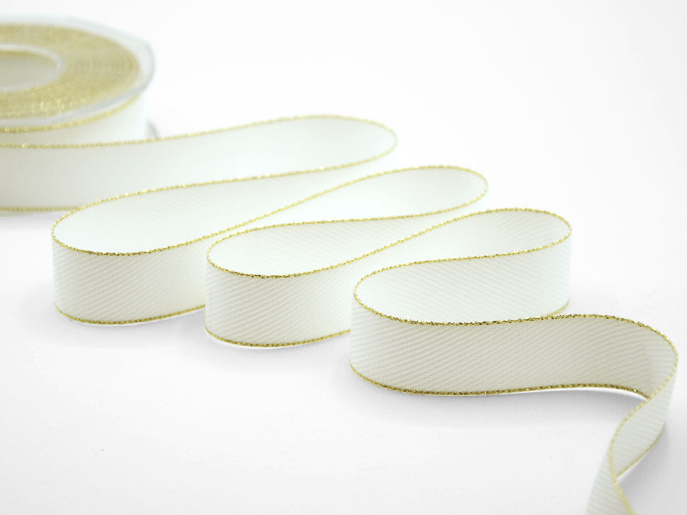 Diagonale Bordi Oro 25 MM Bianco Naturale. Il nastro elegante e raffinato per definizione è il doppio raso, qui è presentato in una variante stampata. È versatile e bello da lavorare e, nella sua semplicità, si presta ad ogni utilizzo. Essendo un prodotto di alta qualità si annoda molto facilmente formando un bel fiocco con le code che presentano un taglio netto e definito, che non si sfilaccia. Il suo aspetto è luminoso, consistente e corposo, ma al tatto è decisamente delicato e setoso. Le infinite possibilità di personalizzazione lo rendono un nastro ideale per molteplici utilizzi: dalla confezione di bomboniere di matrimoni e cerimonie alla decorazione dei fiori e della tavola; dalle confezioni regalo, anche natalizie, a tutti gli eventi di pregio.. Codice colore# 1 - CONFEZIONATO IN BOBINA DA METRI 15