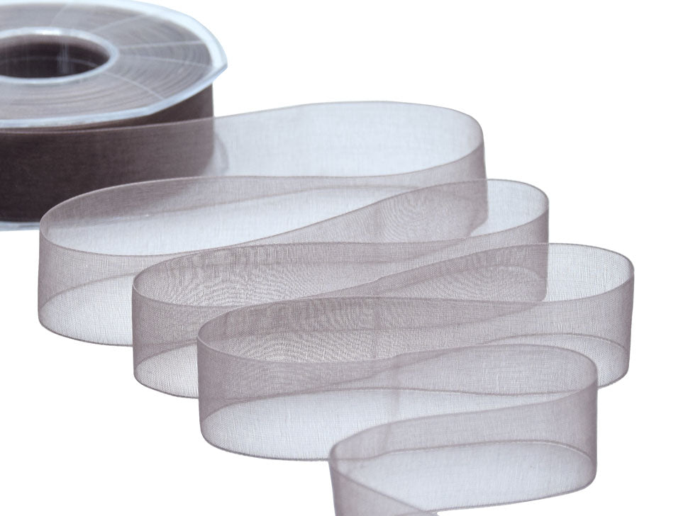 Organza 25mm Cacao. Nastro in velo di organza, trasparente, perfetto per le nozze e la decorazione del matrimonio e nei pacchetti regalo. È tessuto con un filato di organza lucido. Codice colore #49 - CONFEZIONATO IN BOBINA DA METRI 50