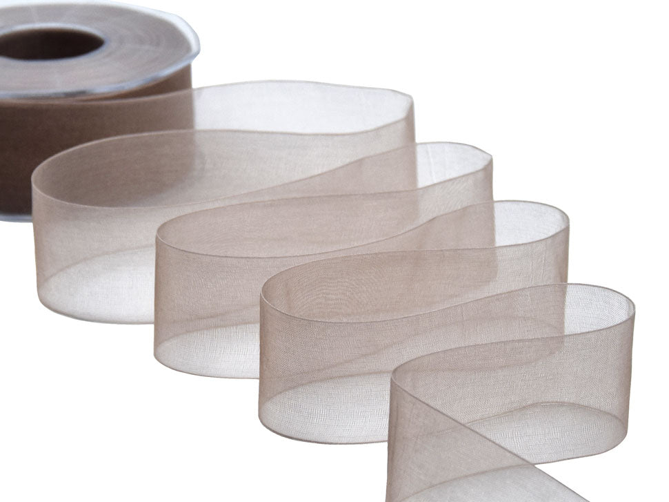 Organza 40mm Cannella. Nastro in velo di organza, trasparente, perfetto per le nozze e la decorazione del matrimonio e nei pacchetti regalo. È tessuto con un filato di organza lucido. Codice colore #55 - CONFEZIONATO IN BOBINA DA METRI 50