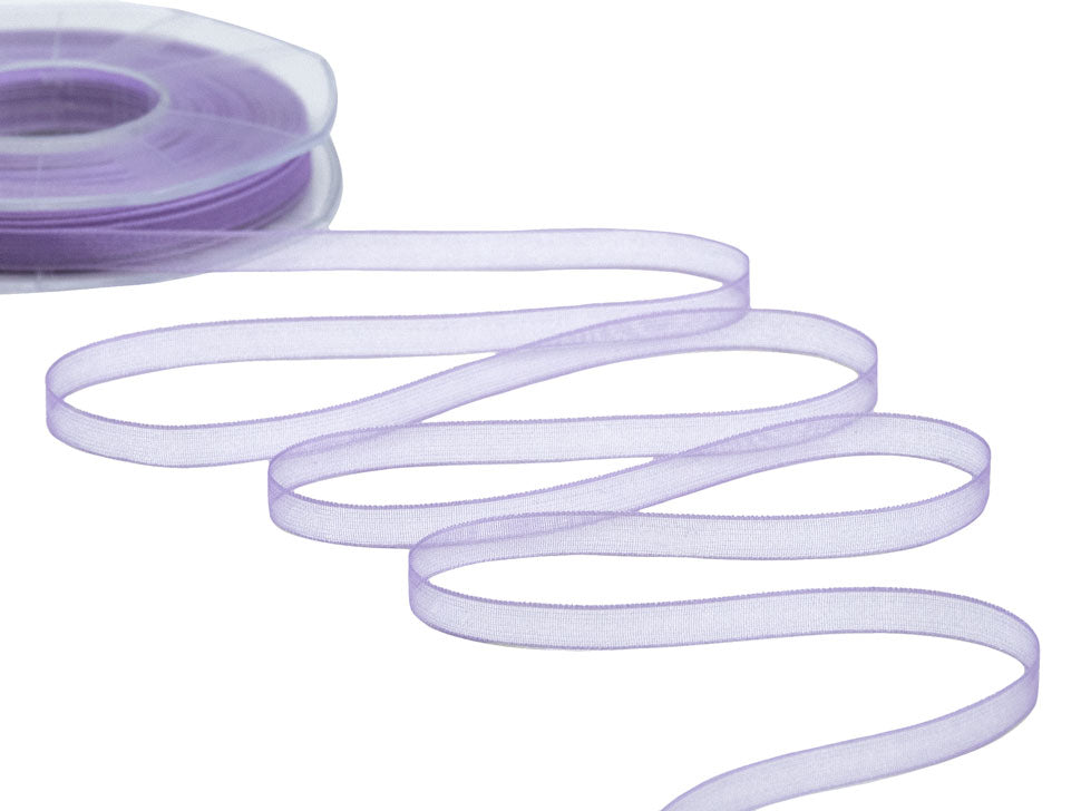 Organza 7mm Glicine. Nastro in velo di organza, trasparente, perfetto per le nozze e la decorazione del matrimonio e nei pacchetti regalo. È tessuto con un filato di organza lucido. Codice colore #76 - CONFEZIONATO IN BOBINA DA METRI 50